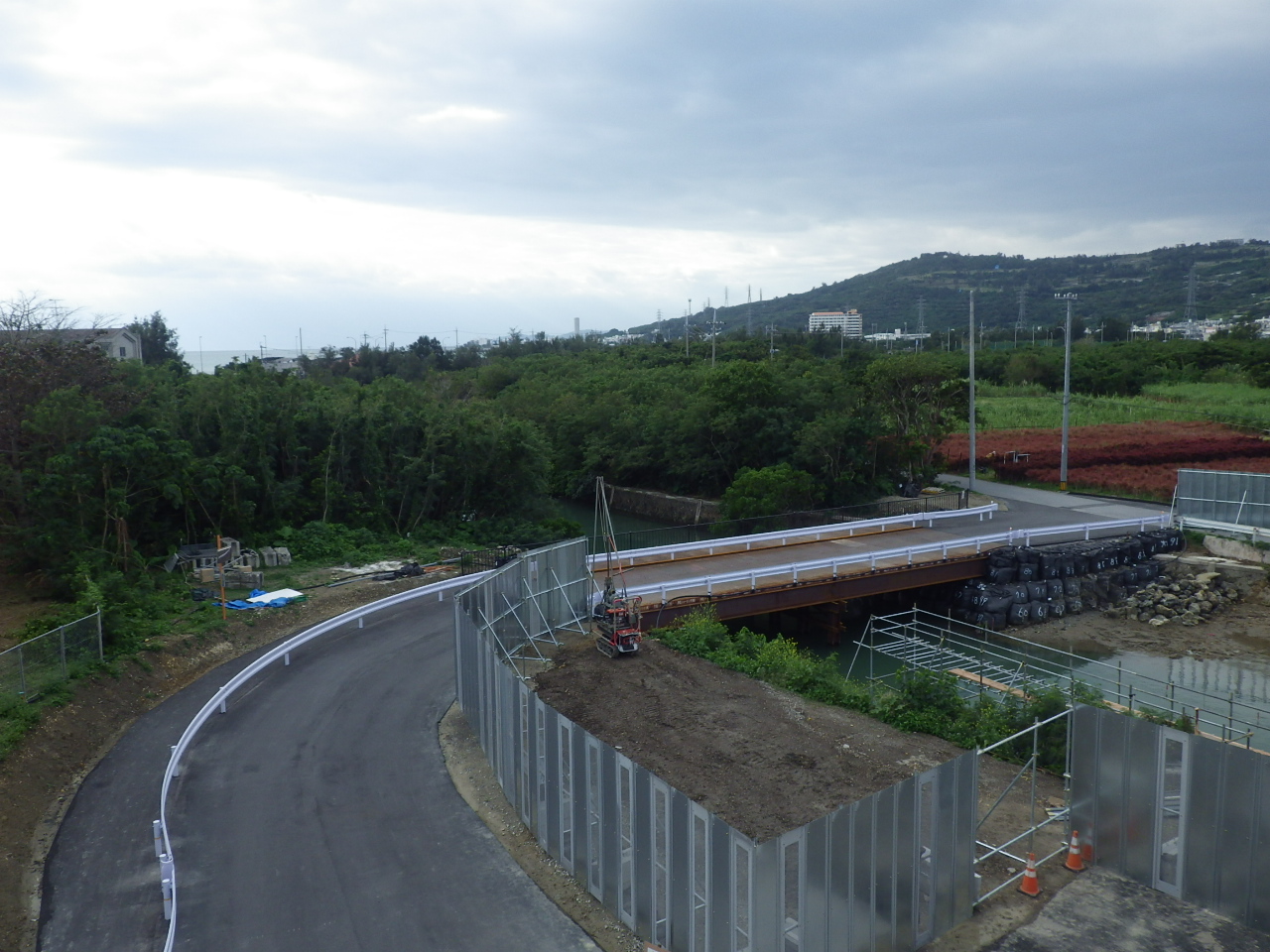 村道北中城高校127号線仮橋設置旧橋撤去工事
