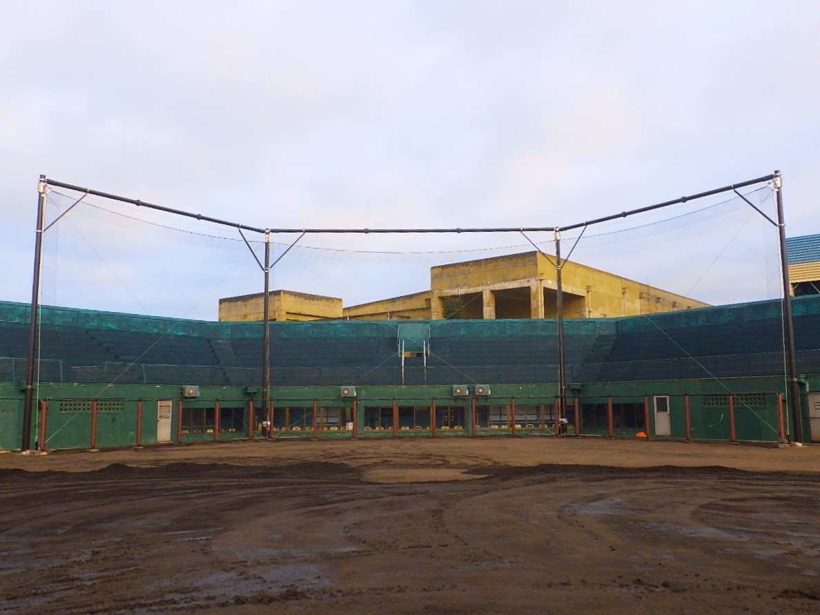 石川野球場バックネット復旧工事